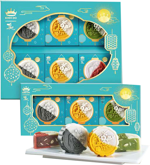 Hộp bánh trung thu Kinh Đô thu tuyết là sự hòa hợp của nét tinh tế văn hóa Việt và phong cách ẩm thực Nhật Bản. Bánh trung thu tuyết 2 màu, kết cấu mềm mịn, vẻ ngoài bắt mắt cùng họa tiết khắc nối xinh xắn cùng những vị bánh lạ miệng