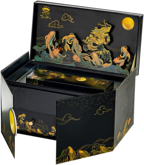 Bánh trung thu trăng vàng Kinh đô Long Ngư Vọng Nguyệt black and gold hộp 2 bánh G2 gồm: