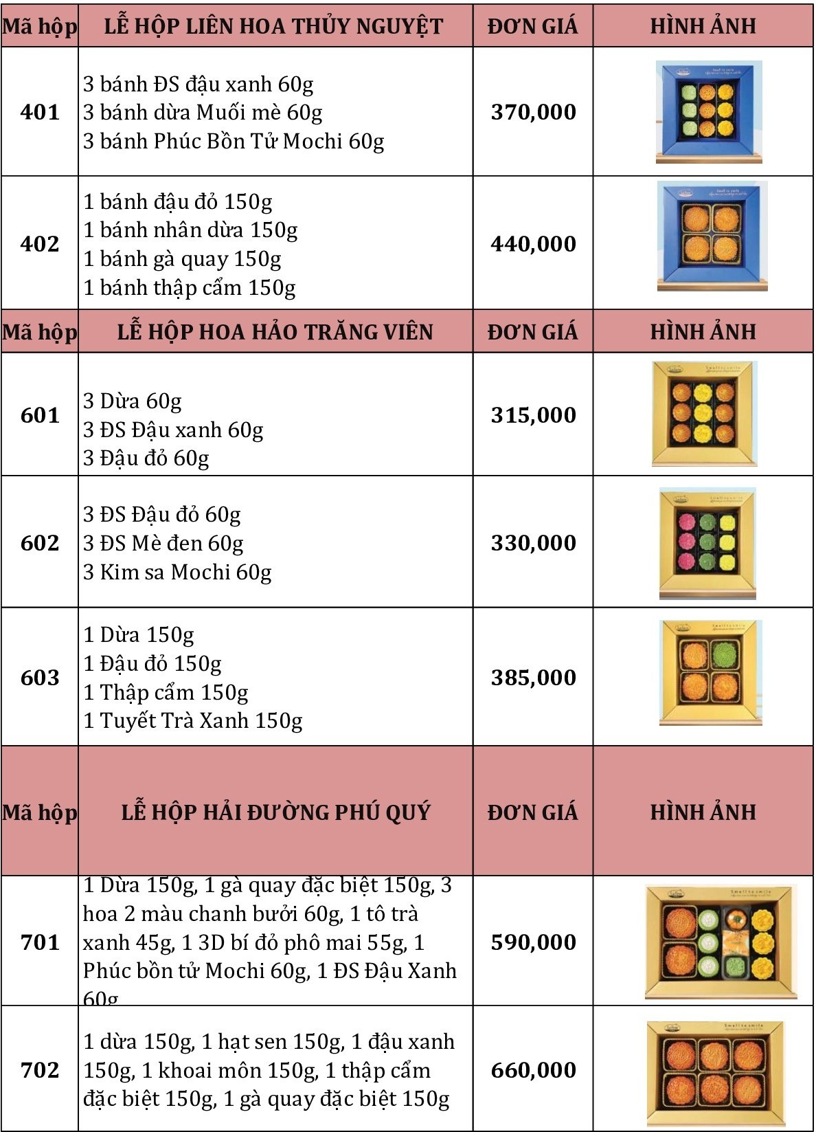 Bạn có thể tham khảo thêm Bảng giá bánh trung thu givral , giá bánh trung thu Đại Phát và giá bánh trung thu Kinh Đô