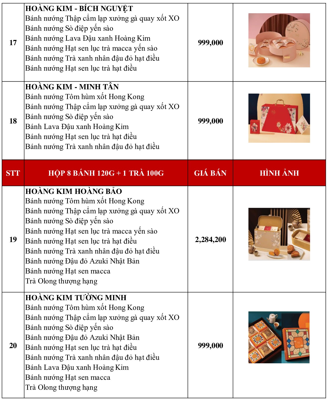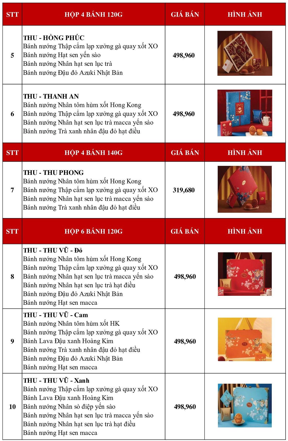 (Giá bánh đã bao gồm VAT và hộp)